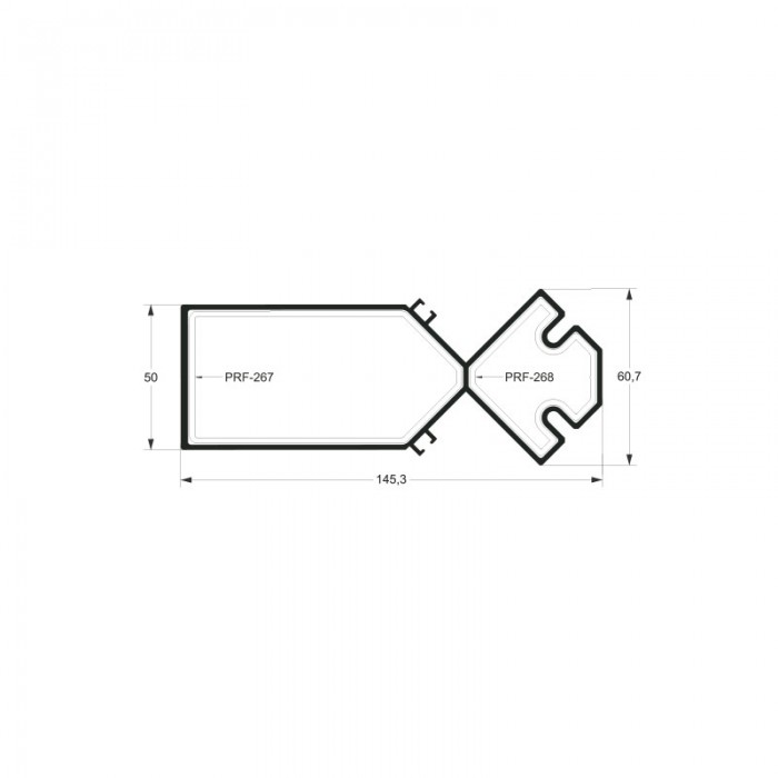 Perfil extudado de alumínio, com peso linear de 2,381kg/m, aplicados a linha de FACHADA ATLANTA.