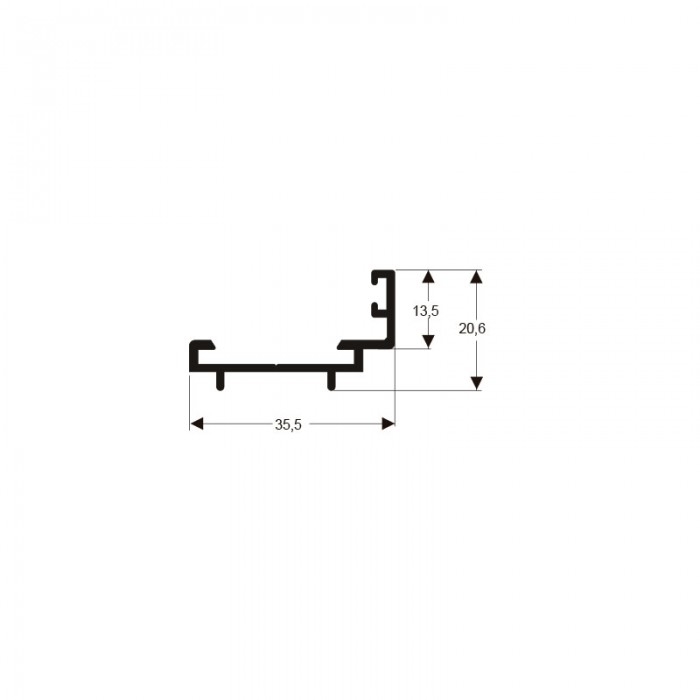 Perfil extudado de alumínio, com peso linear de 0,274kg/m, aplicados a linha de LINHA 30...