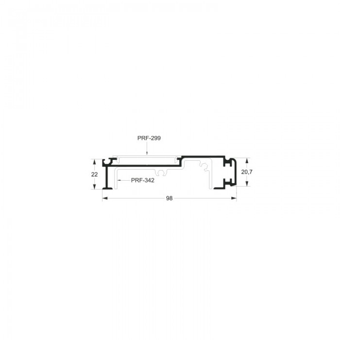 Perfil extudado de alumínio, com peso linear de 0,791kg/m, aplicados a linha de FACHADA ATLANTA.