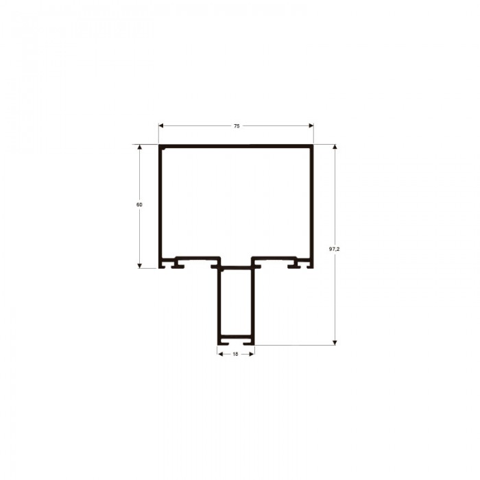 Perfil extudado de alumínio, com peso linear de 1,799kg/m, aplicados a linha de PELE DE VIDRO.