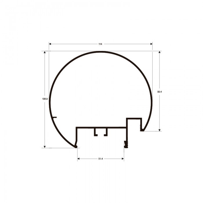 Perfil extudado de alumínio, com peso linear de 2,065kg/m, aplicados a linha de GUARDA-CORPO E CORRIMÃOS.