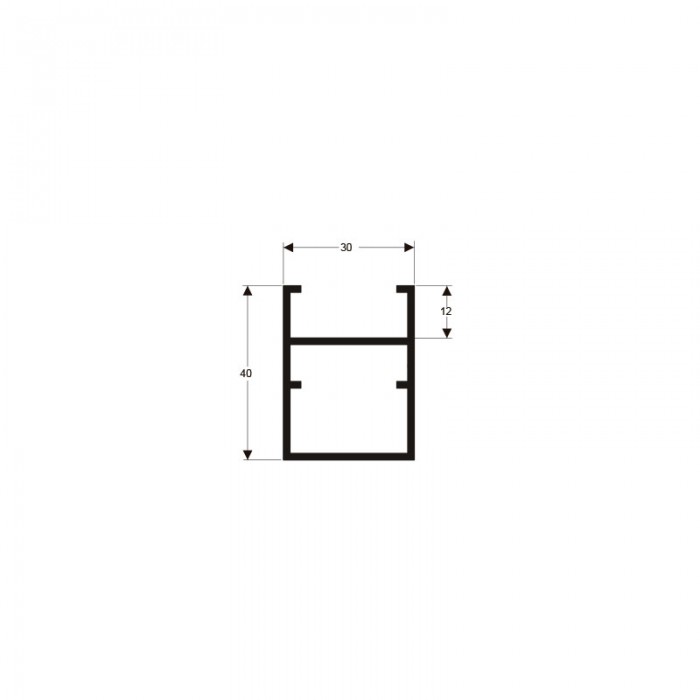 Perfil extudado de alumínio, com peso linear de 0,585kg/m, aplicados a linha de LINHA 30.