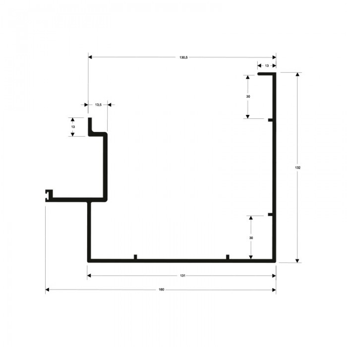 Perfil extudado de alumínio, com peso linear de 3,070kg/m, aplicados a linha de Portões...