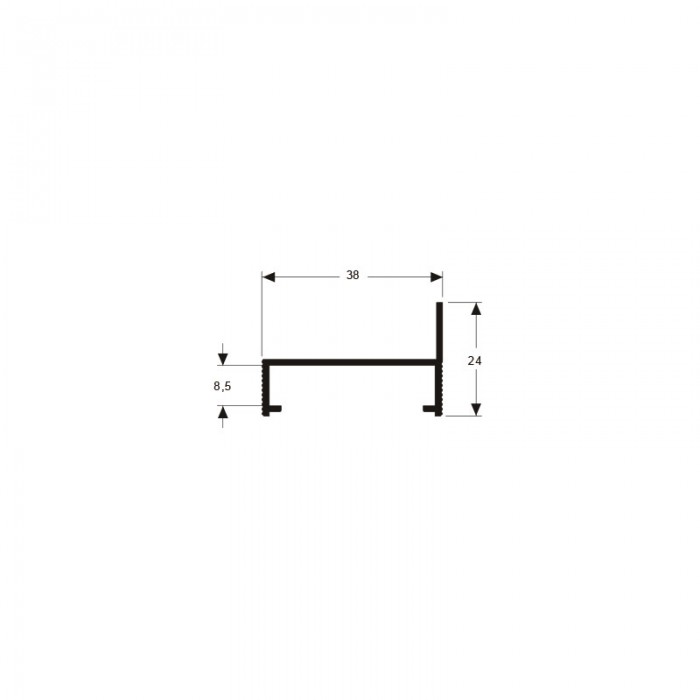 Perfil extudado de alumínio, com peso linear de 0,241kg/m, aplicados a linha de Contramarcos.
